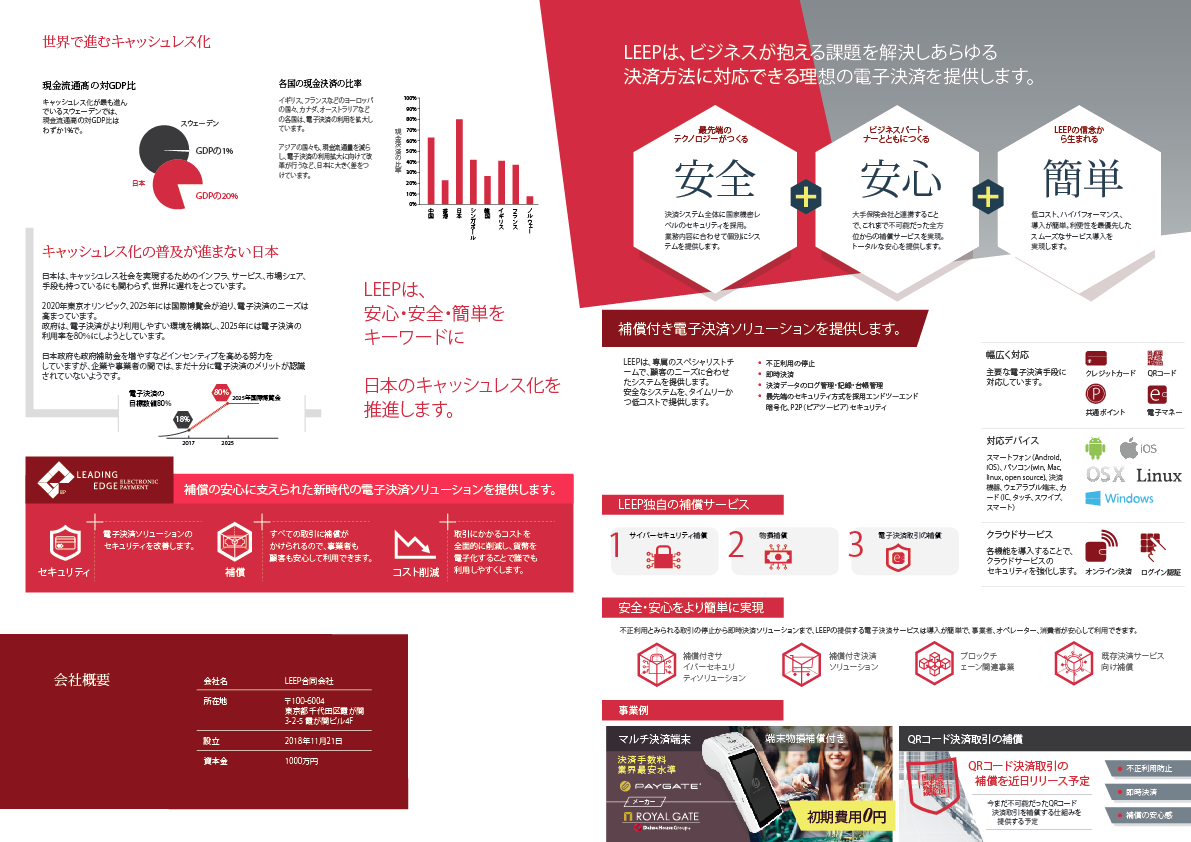 先端技術を駆使したマルチ決済端末等を提供し、日本の決済市場を開拓することを目指すLEEP合同会社。